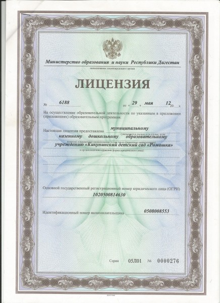 | Полное наименование образовательной организации* | Муниципальное Казённое Дошкольное Образовательное Учреждение администрации МО "Гергебильский район" Кикунинский "Детский сад "Ромашка" |